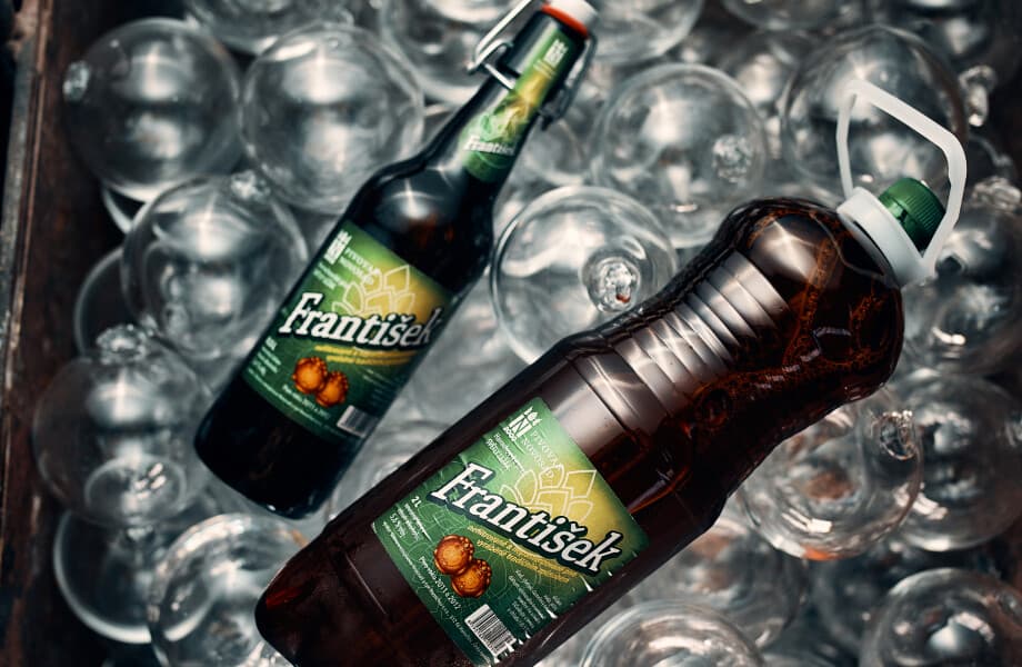 Nabízíme prodej těchto piv: Huťské výčepní 8°, tmavý ležák Čerťák 12° nebo světlý ležák František 12°