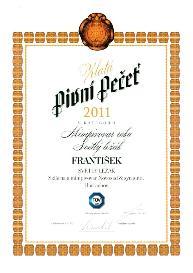 V létě 2002 tak přibyla Harrachovu další turisticky zajímavá „atrakce“, soukromý minipivovar, který láká na lahodné kvasnicové nefiltrované a nepasterizované pivo. Během své krátké historie dokázal tento malý pivovar získat mnohá ocenění, včetně dvou „Zlatých pivních pečetí“ za vítěztví v absolutní kategorii mezi všemi zúčastněnými pivovary na pivních slavnostech v Táboře v letech 2011 a 2012! Toto ocenění dostal v obou případech světlý ležák František.